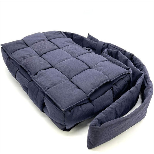Bottega Veneta Padetto Tech Cassette Maxi Intrecciato Shoulder Bag Nylon Navy