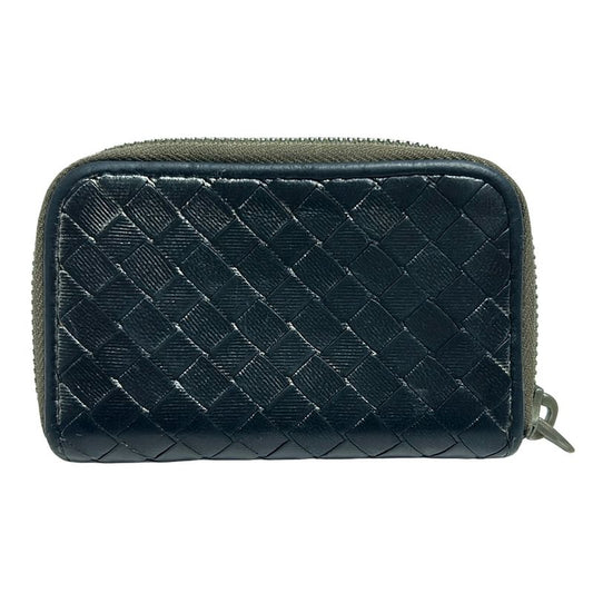 Bottega Veneta Coin Case Intrecciato Black Round Zipper Leather
