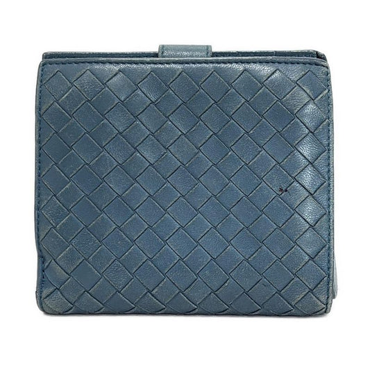 Bottega Veneta Bifold Wallet Intrecciato Blue Gray Round Zipper Leather