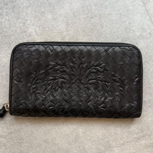 Ultra Bottega Veneta Intrecciato Round Zipper Long Wallet Embossed Leather