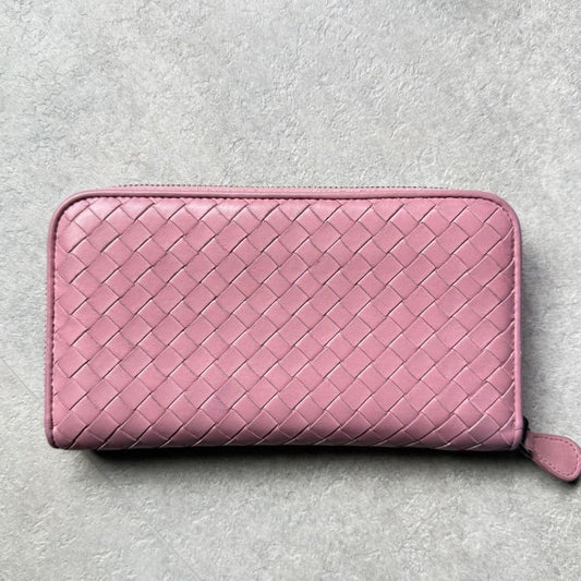 Bottega Veneta Round Zipper Long Wallet Intrecciato Pink Long Wallet Calf