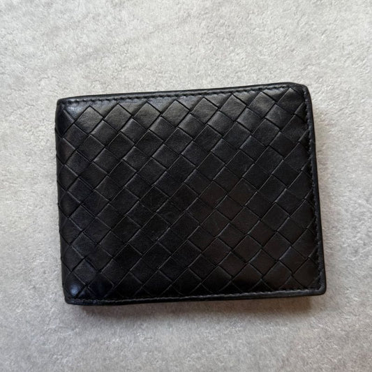 Bottega Veneta Intrecciato Bifold Wallet Black Calf Leather Bifold Wallet Men's