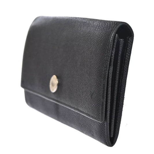 Bvlgari Logo Long Wallet Fold Wallet Black Silver 07bs058