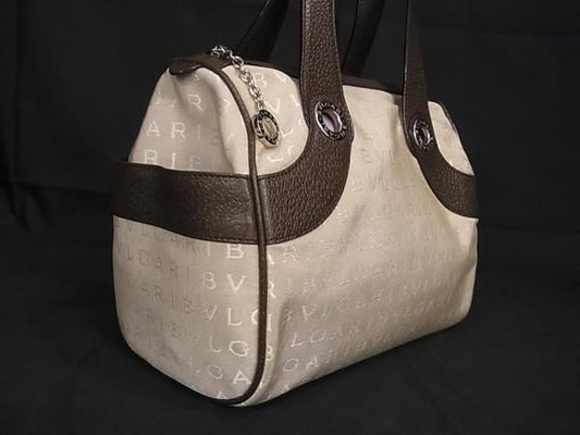 Bvlgari Canvas And Leather Handbag Mini Boston Women Beige And Brown Av7598