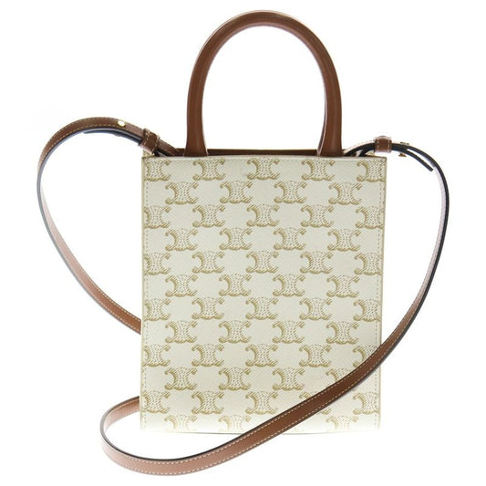 Celine Mini Vertical Cabas Triomphe Logo Allover PVC Leather 2WAY Hand Shoulder