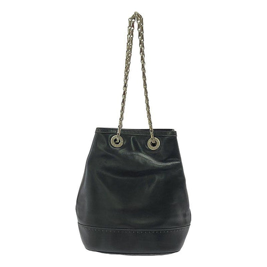 Celine - Old Celine Circle Logo Leather Chain Shoulder Bag - Black - Women