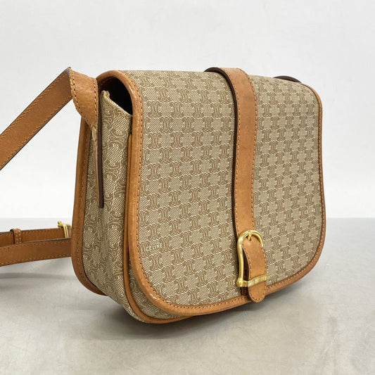 Celine Shoulder Bag Macadam PVC Beige Gold Hardware Women