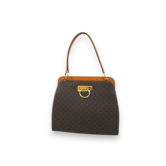 Celine Handbag Macadam Pattern One Handle Gold Hardware Brown Leather Made In
