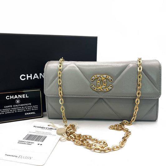CHANEL 19 CC Lambskin Flap Wallet on Chain Bag Light Grey