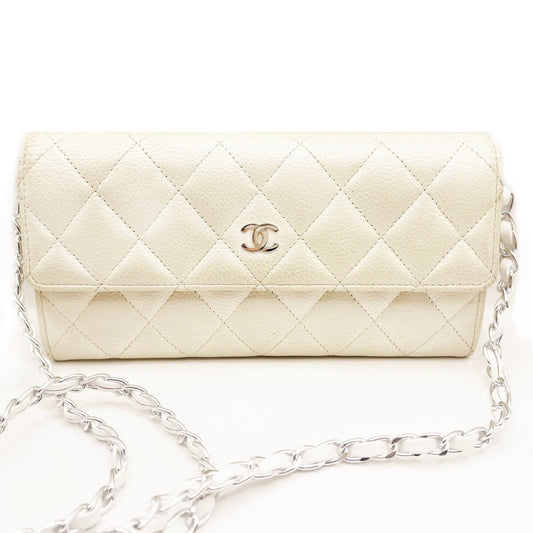 Authentic Chanel CC Classic Timeless Caviar Flap Wallet on Chain Purse White Bag