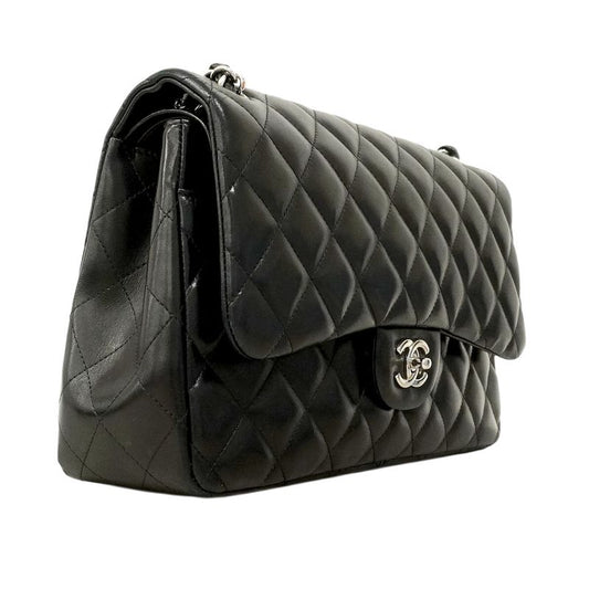 Chanel Shoulder Bag Big Matelasse Lambskin Black Silver Hardware Women's
