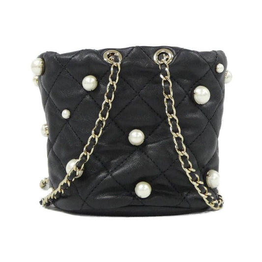 Chanel Shoulder Bag Matelasse Pearl Chain Ap1838 Black Lambskin (sheep Leather)