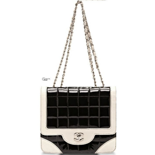 CHANEL CC Lambskin Patent Chocolate Bar Flap Bag Chain Beige Black