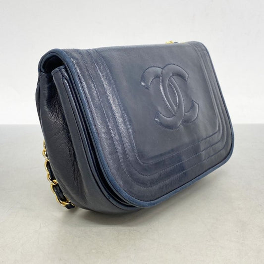 Chanel Shoulder Bag Lambskin Navy Gold Hardware Women