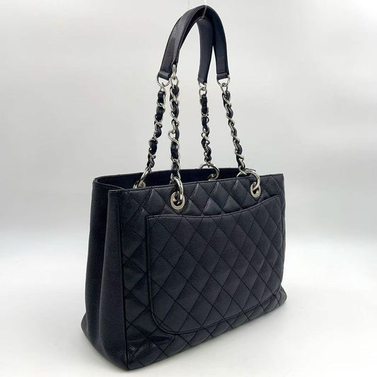 Chanel GST Tote Bag Matelasse 13th Caviar Skin Black Shoulder Bag Silver