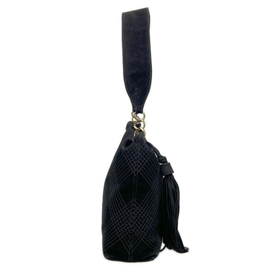 Chanel Shoulder Bag Matelasse Black Stitching Tassel Vintage Gold Hardware