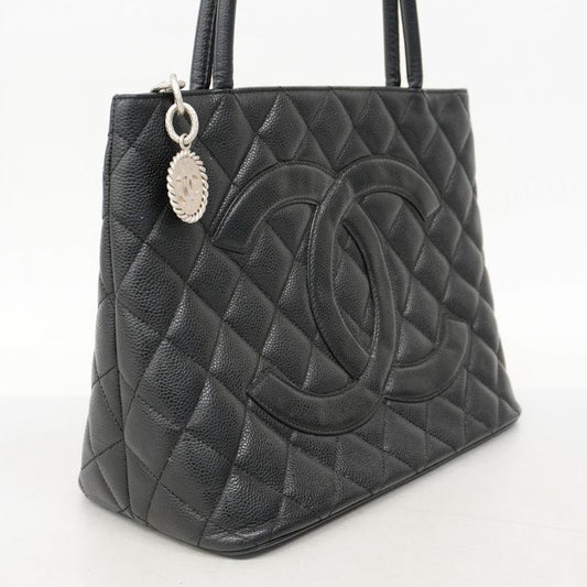 Chanel Tote Bag Revival Tote Caviar Skin Black Silver Hardware Women's
