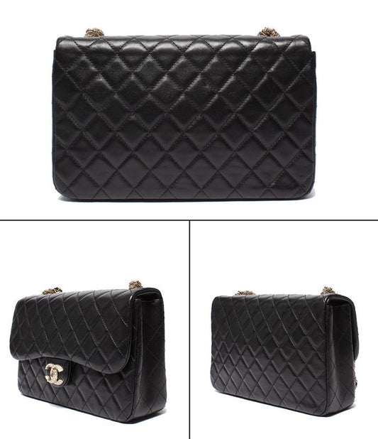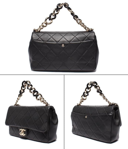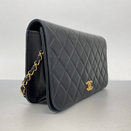 Chanel Shoulder Bag Matelasse Lambskin Black Gold Hardware Women