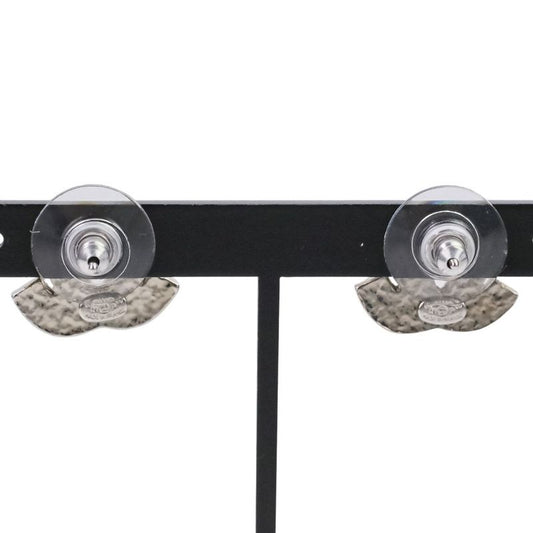 Chanel 01P Baguette Cut Rhinestone Coco Mark Earrings Silver Color Ladies