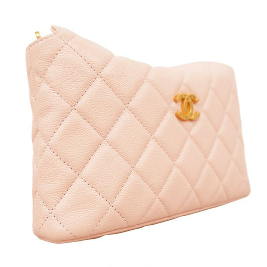 Chanel Shoulder Bag Matelasse Caviar Skin Pink Gold Hardware Women