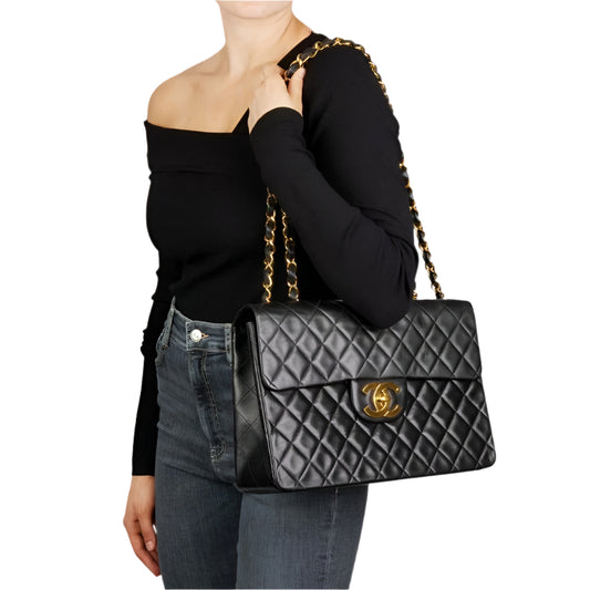CHANEL Jumbo Maxi XL 24K Gold Flap Bag Lambskin Chain Shoulder Black