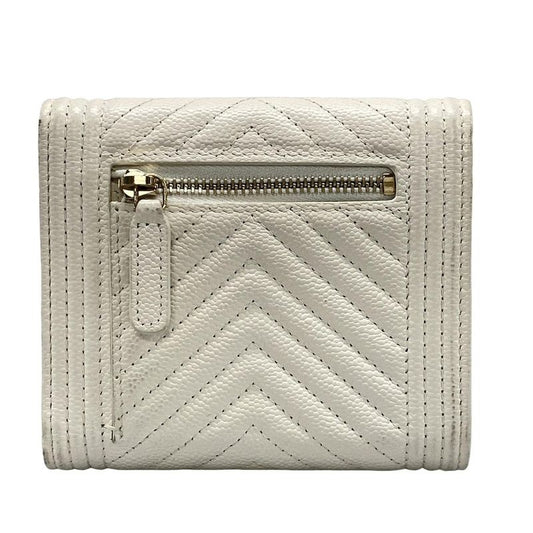Chanel Trifold Wallet Boy Chanel Ivory Compact / V-stitching / Gold Hardware /