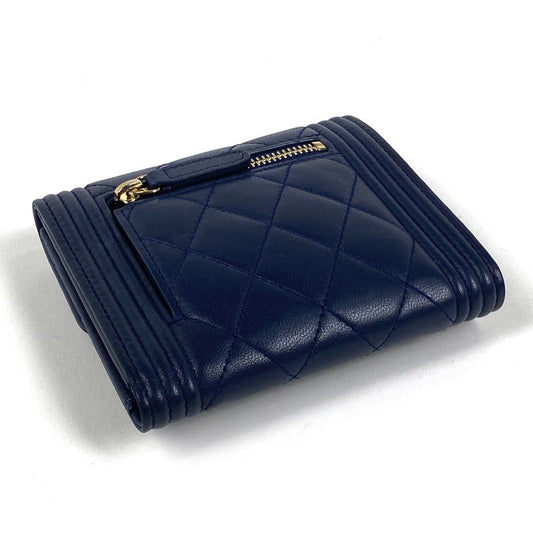 Chanel Boy Chanel Trifold Wallet Mini Wallet Trifold Leather Navy Women