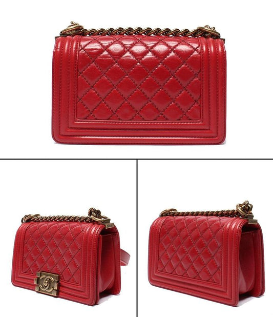Chanel Matelasse Coco Boy Chain Shoulder Bag Camera Bag Red Lambskin Ladies