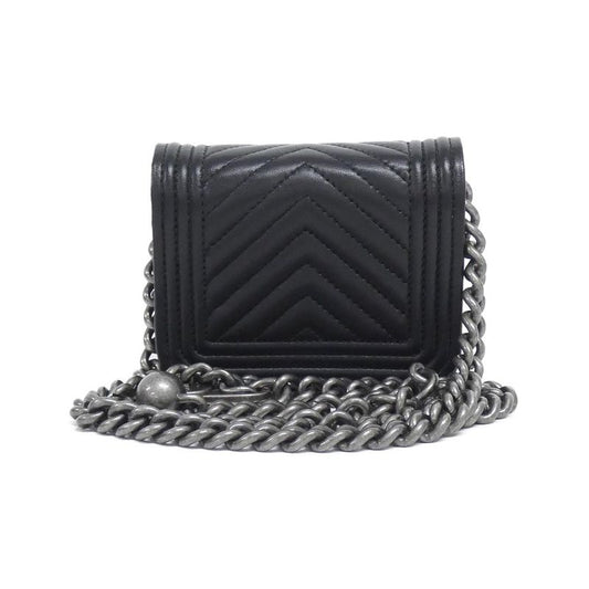 Chanel Shoulder Wallet Boy Chanel Caviar Skin Black Gold Hardware Women's