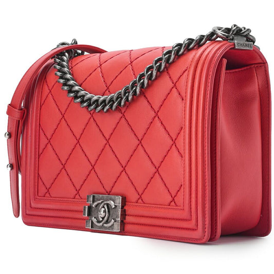 Chanel Boy Chanel Large Size Matelasse Chain Shoulder Bag Calfskin Red (silver