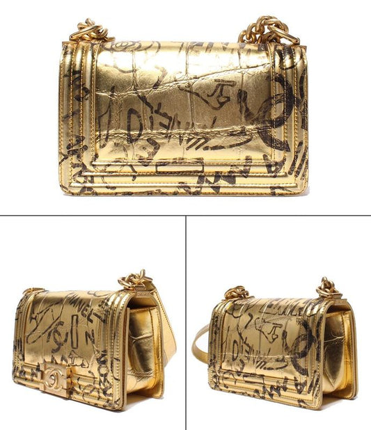 Chanel Chain Shoulder Bag Gold Hardware Shape Push Leather Graffiti Boy Chanel