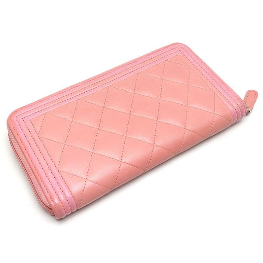 Chanel Round Zip Long Wallet Boy Chanel Coco Mark Pink Authenticity With Box