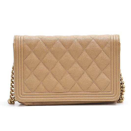 Boy Chanel Chain Wallet In Caviar Skin Beige Gold Hardware