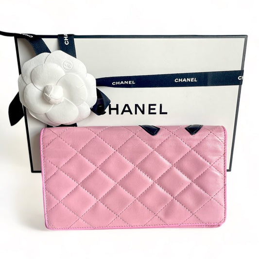 Chanel Cambon Line Long Wallet Purse Pink Quilted Leather