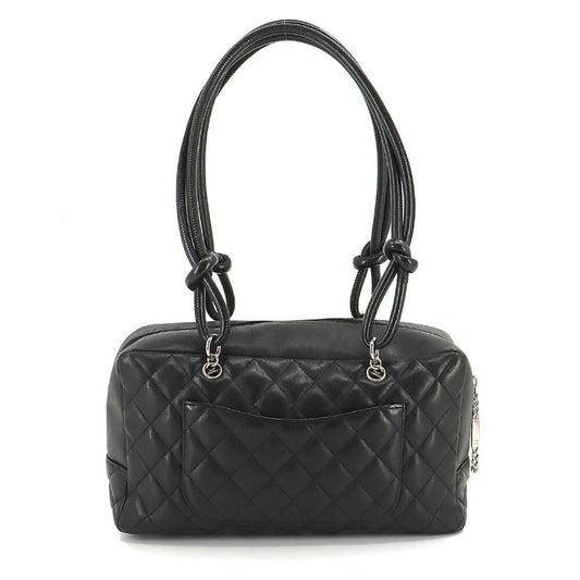 Chanel Cambon Ligne Bowler Pochette Quilted Shoulder Bag Black Tote