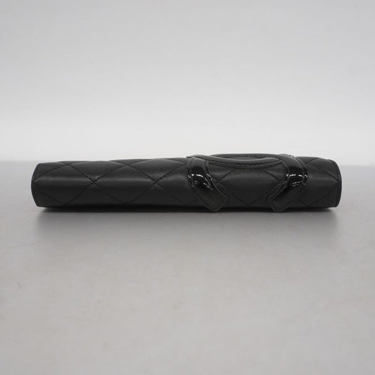 Chanel Cambon Line Chain Wallet Foldable Long Wallet Leather Enamel Black