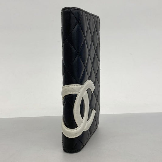 Chanel Long Billfold Cambon Lambskin Black Silver Hardware Women