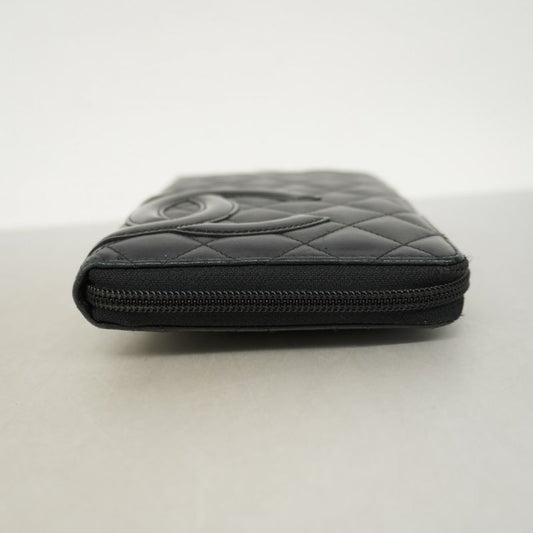 Chanel Long Wallet Cambon Lambskin Black Silver Hardware Women
