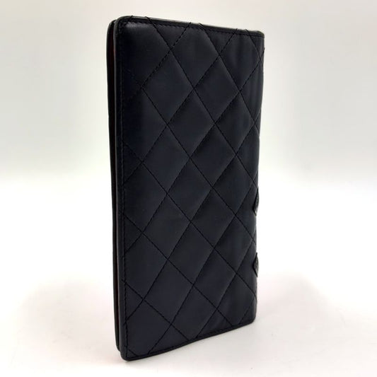 Chanel Long Wallet Cambon Lambskin Black Silver Hardware Women