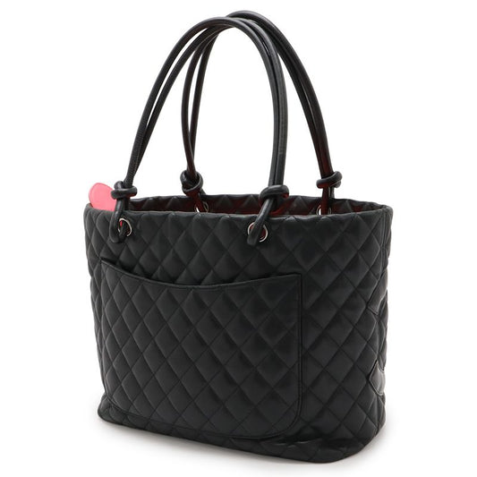 Chanel Tote Bag Cambon Lambskin Black Silver Hardware Women