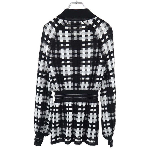 Chanel Coco Mark Sheer Check Flared Knit Cardigan P56179k07329 Black 38