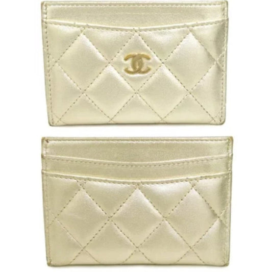 CHANEL Metallic Lambskin Quilted CC Card Case Holder Wallet Gold