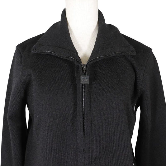 Chanel Sport Line Side Logo 03A P22075v01420 Wool Black Women's Cardigan