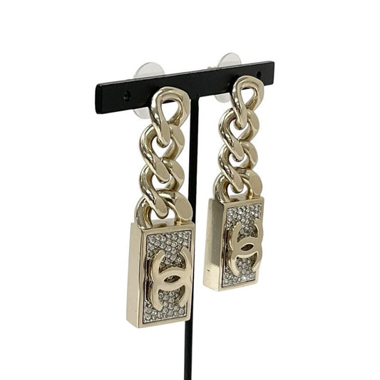 Chanel Earrings Earring Gold Coco Mark Chain Rhinestone
