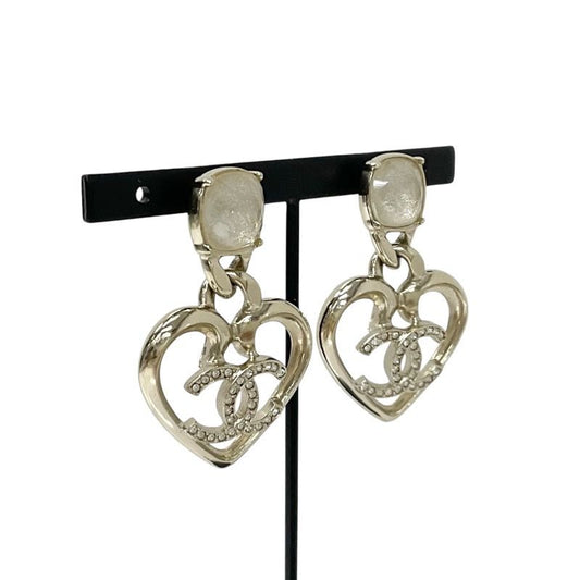 Chanel Earrings Earring Gold Coco Mark Rhinestone Bijou Heart