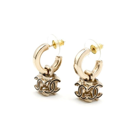 Chanel Earrings Earring Gold Black Coco Mark Cube Hoop