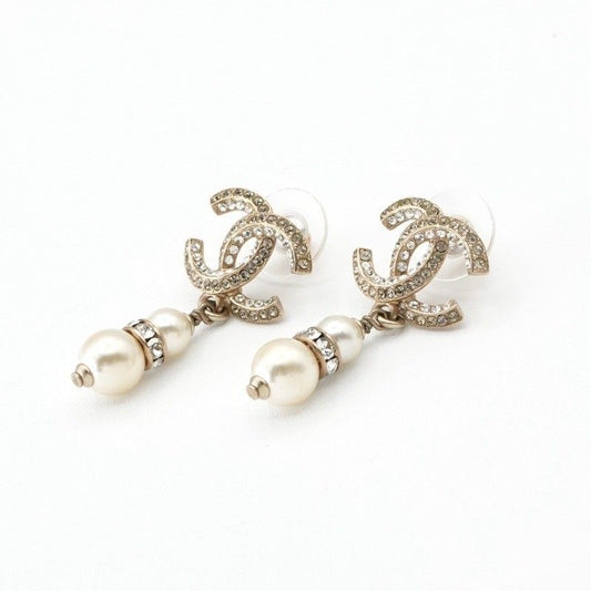 Chanel Earrings Earring Gold Coco Mark Rhinestone Bijou