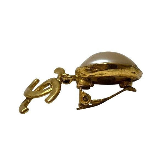 Chanel Coco Mark 93P Faux Pearl Gold Branded Accessories Earrings Ladies