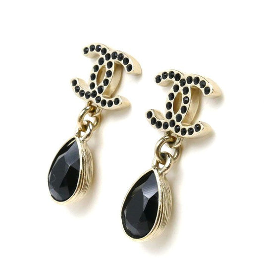 Chanel Metal Coco Mark Black Stone Earrings Ladies Pre-owned