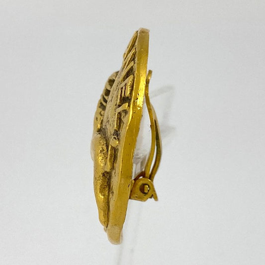 Chanel Logo Round Earrings CC Mark Lion Motif Earrings GP Gold Ladies